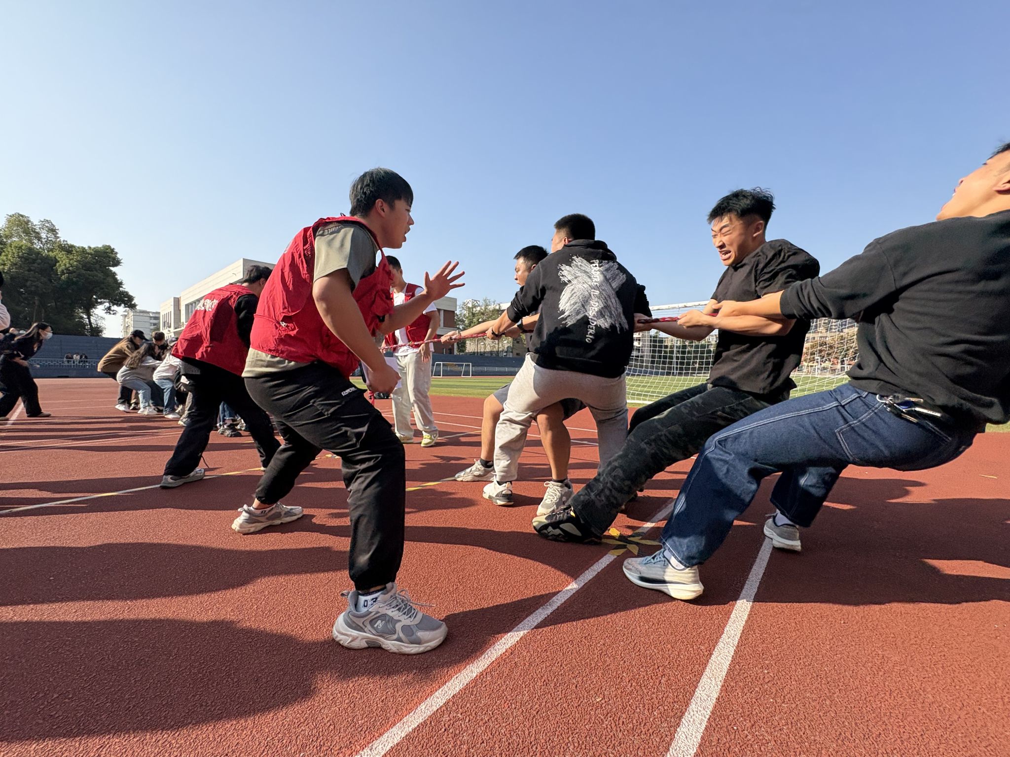 比赛前,主裁判和副裁判详细讲解了比赛规则,并安排各参赛队伍的领队进行了现场抽签,以确保比赛公平公正的进行。随着裁判的一声令下,现场气氛即刻被点燃。艺术与设计学院的选手们迅速进入状态,他们咬紧牙关,紧握绳索,全力以赴地向自己的方向拉动。他们齐心协力,默契配合,展现出了顽强的毅力和拼搏精神。