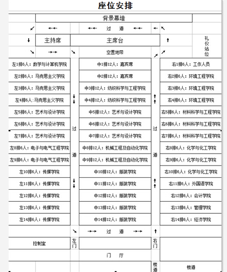 四、座位安排:各培养单位研究生需按照座位安排有序落座,座次表如下图所示。