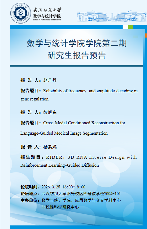 学术预告:第1087期研究生学术论坛暨数学与统计学院2026年第2期研究生学术论坛