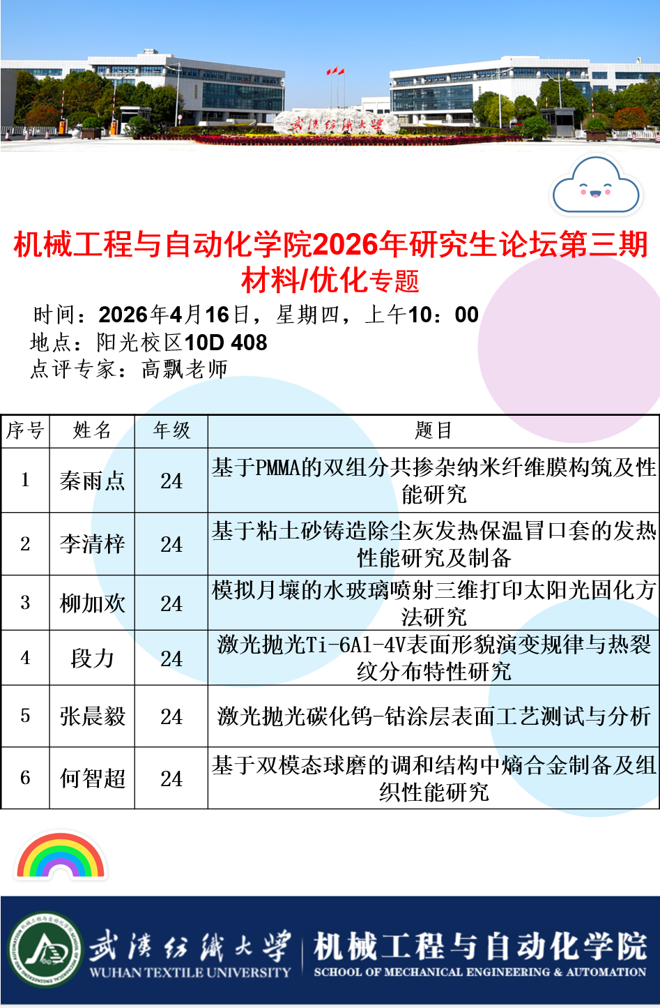 学术预告:第1122期研究生学术论坛暨机械工程与自动化学院2026年第3期研究生学术论坛
