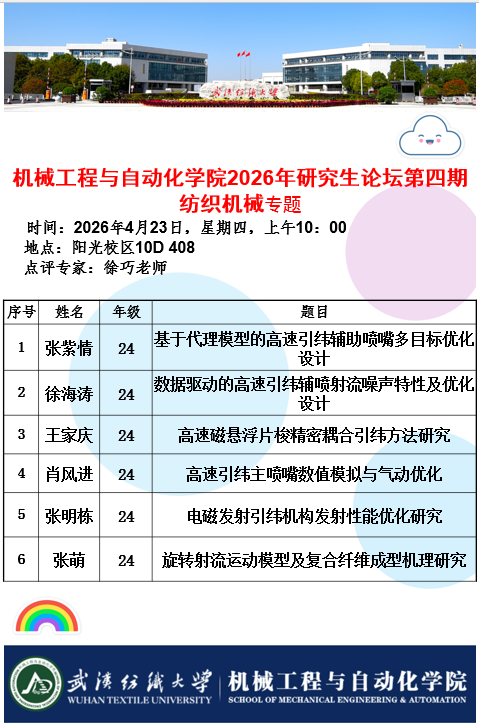 学术预告:第1134期研究生学术论坛暨机械工程与自动化学院2026年第4期研究生学术论坛
