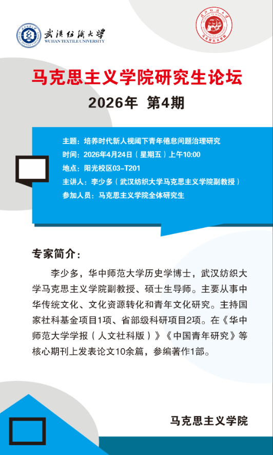 学术预告:第1135期研究生学术论坛暨马克思主义学院2026年第4期研究生学术论坛