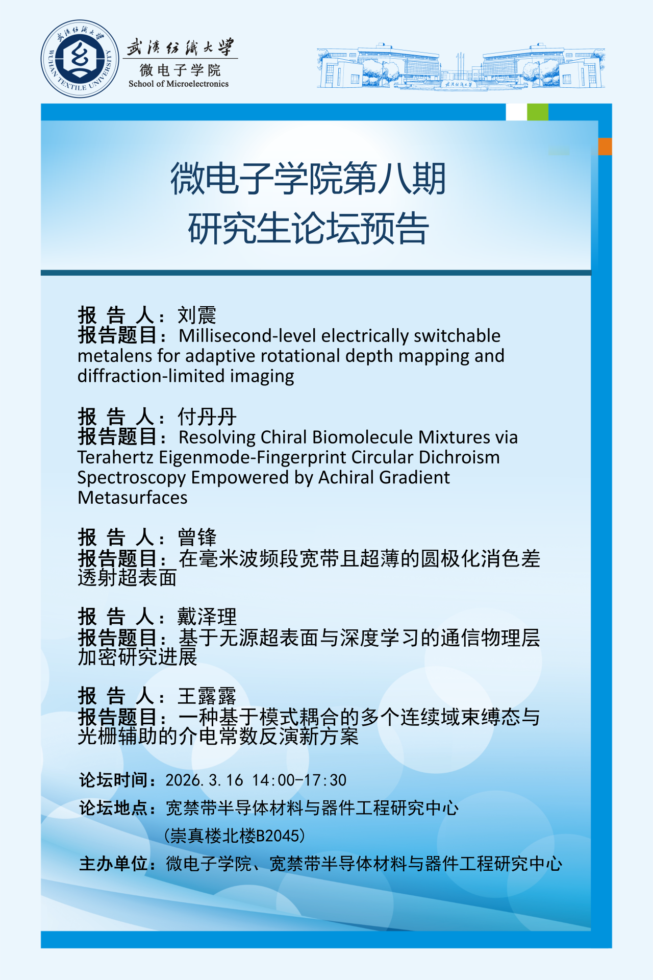 学术预告:第1139期研究生学术论坛暨微电子学院2026年第1期研究生学术论坛