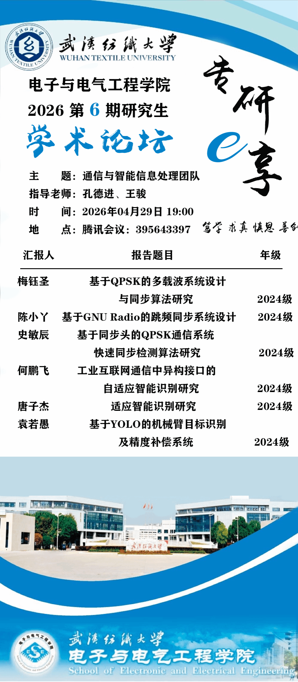 学术预告:第1142期研究生学术论坛暨电子与电气工程学院2026年第6期研究生学术论坛